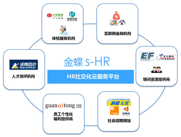 通過(guò)金蝶s-HRV8.5提供的云服務(wù)平臺(tái),企業(yè)可以直接與提供招聘服務(wù)、培訓(xùn)課程、人才測(cè)評(píng)、體檢服務(wù)和個(gè)性化福利等專業(yè)服務(wù)商對(duì)接,利用外部資源為員工提供更加專業(yè)的服務(wù),豐富HR工作的內(nèi)涵。